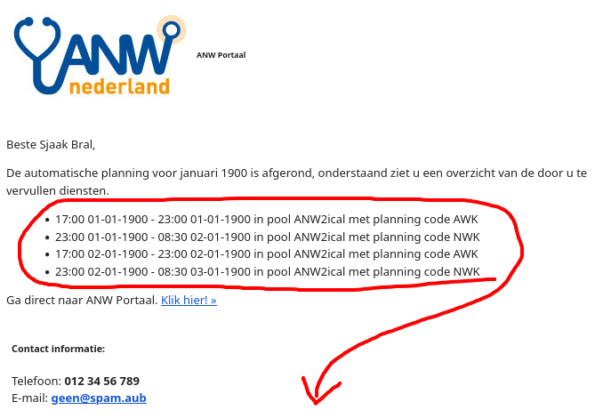Copy-paste je rooster uit de mail van ANW in het tekstveld zoals hieronder en druk op Genereer .ical-bestand. Standaard worden opeenvolgende diensten (bv avond + nachtdienst) gecombineerd.